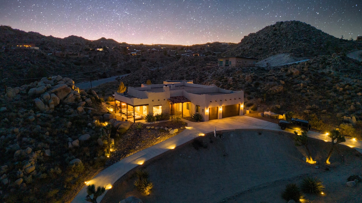 Desert Rocks evi, dağlara bakan muhteşem gün batımı manzarasına sahip bir dağın tepesinde yer alıyor. İnanılmaz pitoresk kayalarla çevrilidir ve eviniz olarak adlandırmanız için huzurlu bir kaçamak noktasıdır. Kayalara ve vadiye bakan bir fincan kahve yudumlarken nefes kesici gün doğumlarıyla uyanın. Tüm Joshua Tree bölgesinin 360 derecelik manzarasını görmek için sabah dağa doğru bir yürüyüşe çıkın. Arkadaşlarınızla jakuzide veya ateş çukurunun yanında toplanın ve rengarenk gün batımını yıldızlı bir gece gökyüzünde izleyin.