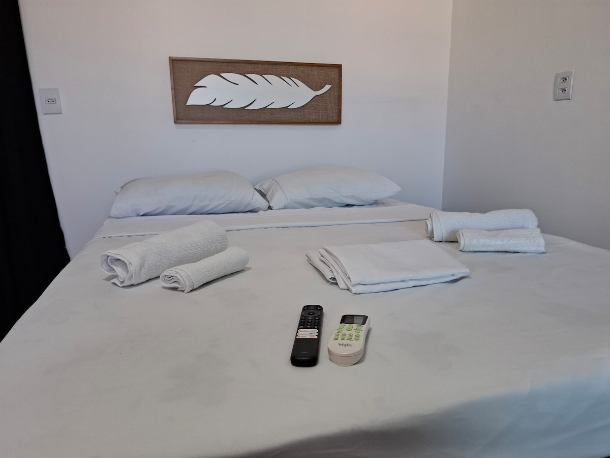 Relaxe neste espaço calmo, moderno e cheio de estilo. O apartamento dispõe de uma aconchegante sala de estar, equipada com mesa de trabalho, TV e ar-condicionado, além de banheiro exclusivo, garantindo privacidade e comodidade. A cozinha é funcional e bem equipada, contando com mesa de jantar e diversos acessórios de cozinha, incluindo bebedouro com água gelada, perfeita para sua rotina diária. A suíte completa, com roupa de cama inclusa, proporcionando noites tranquilas e bem descansadas.