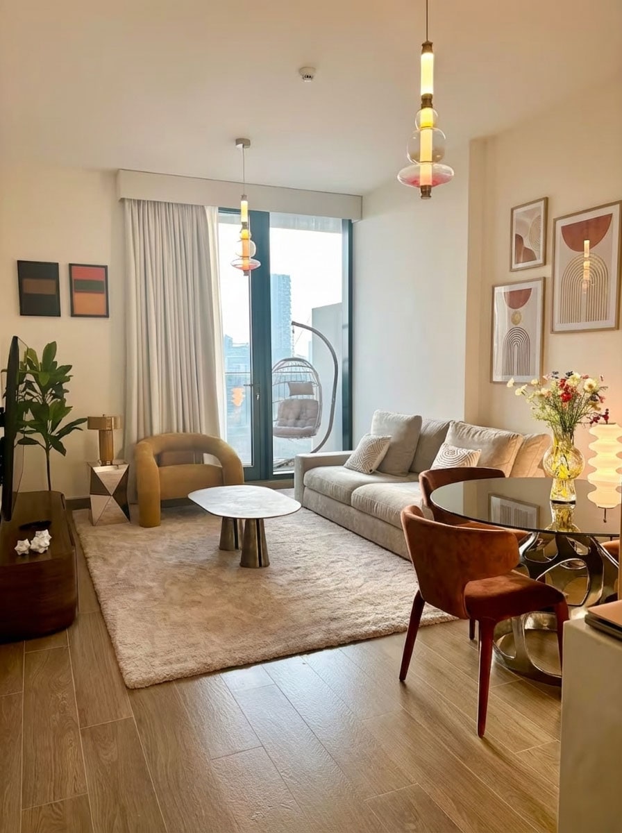 Welcome to your bright and modern 1-bedroom apartment in the heart of Jumeirah Village Circle – perfect for couples, solo travelers, business guests, and even small families. Thoughtfully furnished and filled with natural light, this home offers everything you need for a comfortable and relaxing stay. Whether you're visiting for a few days or planning a longer stay, you’ll feel right at home. Kick back and relax in this calm, stylish space.