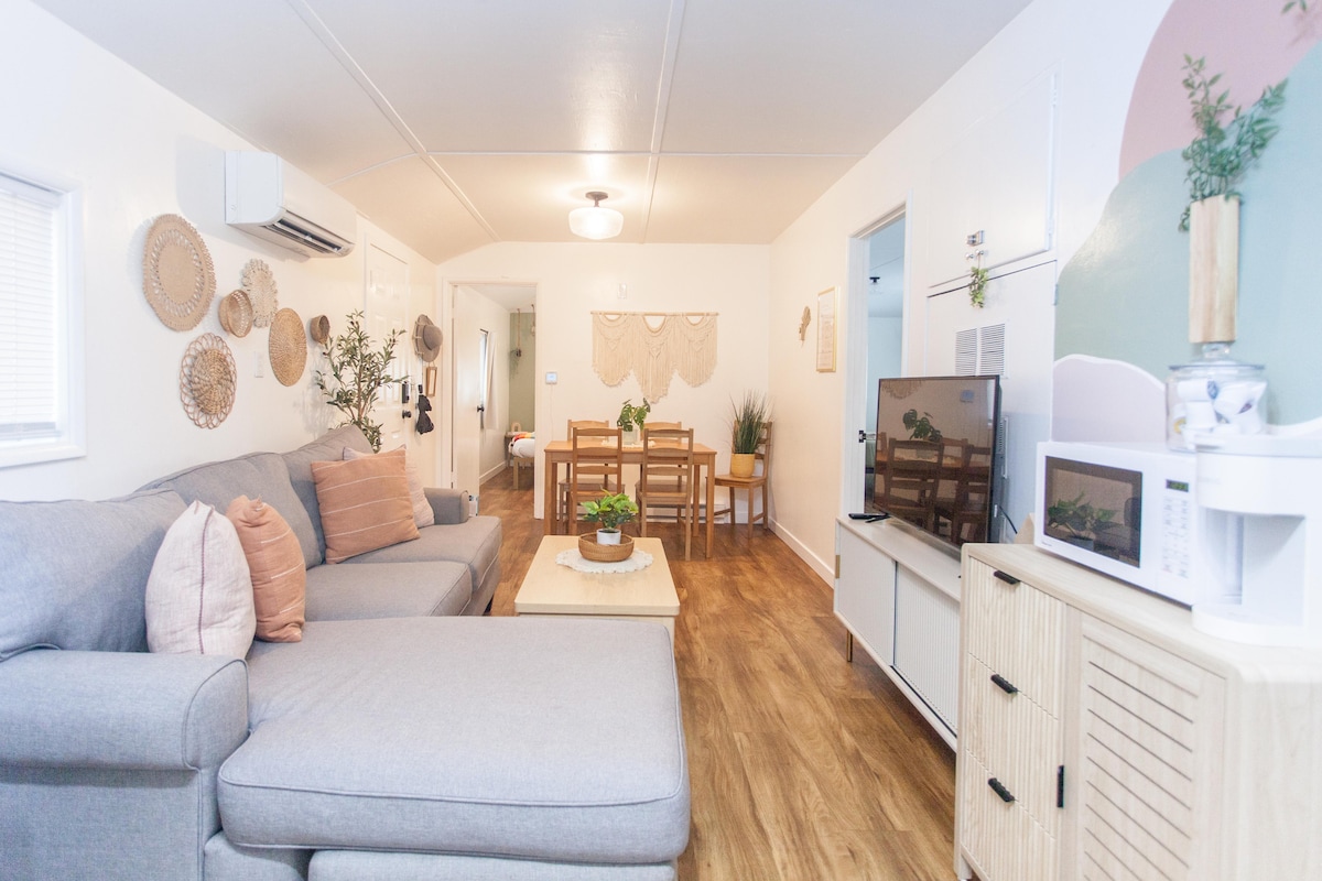 Ask about an early check-in and 5 minute drive to the airport! Kick back and relax in this calm, sun soaked studio guest house. This space is perfect for someone in need of a getaway from everyday life. Wake up with the sun, make some coffee, work from home with peace and quiet. Also great for a romantic getaway with your sweetie. Queen bed some mood lighting. Watch some tv on our roku and stair at the stars through the skylights. Enjoy a private entrance with outdoor seating.