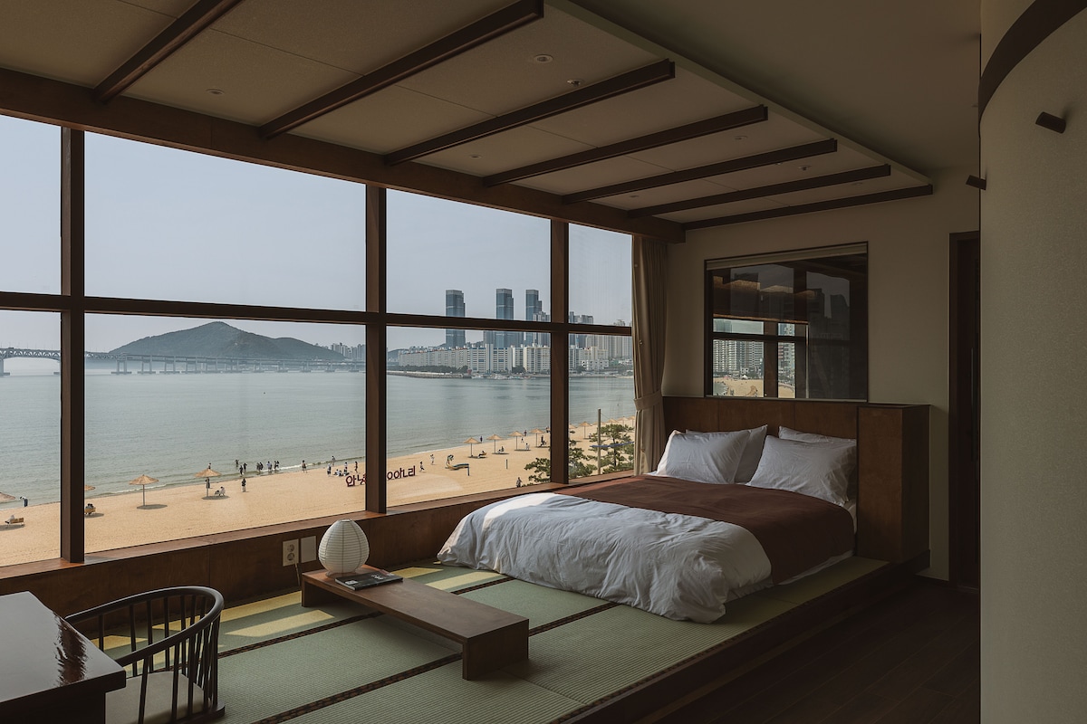 일본풍 료칸/광안대교 오션뷰/다다미방/자쿠지/무료주차/유카타/말차체험/드론쇼/401호