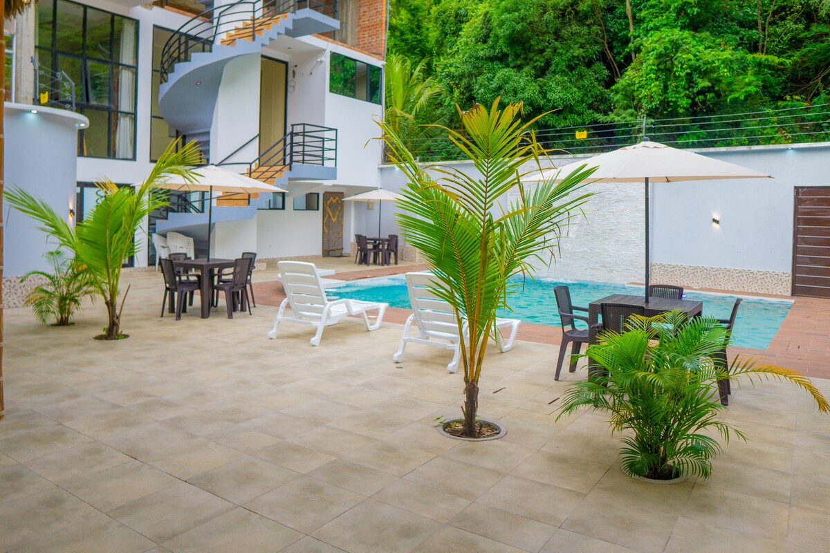 "La Merced'in göbeğinde yer alan bu şık evde tüm ailenizle birlikte eğlenin. Modern ve rahat dairemizde doğanın ve konforun keyfini çıkarın. Özellikler: - Konforlu yataklara sahip 2/3 yatak odası. - 1 banyo. - Oturma odası, yemek odası ve balkon. - Ev aletleri - TV'li yaşam alanı - Dağ manzarası. - Merkezi konum, restoranlara ve turistik noktalara yakın Olanaklar: - Turist yardımı ve önerileri - Terminalden Recojo