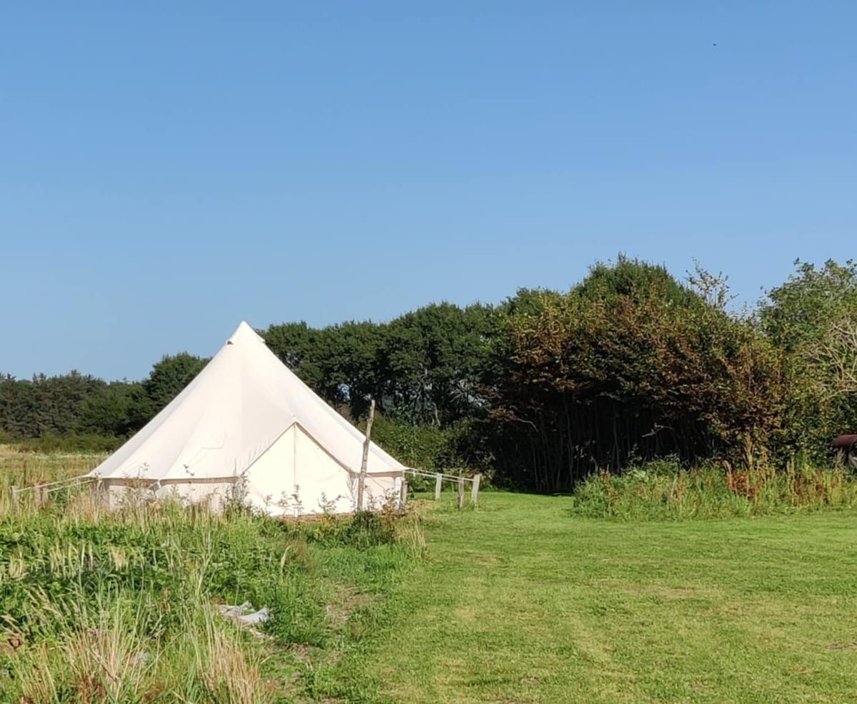 Hjerteligt velkommen i mit hyggelige telt, som jeg har slået op i min baghave. Her er plads til 4 personer og jeg har indrettet min lille oase med et mini-køleskab, så I fx kan lægge en flaske rosé på køl, og nyde solnedgangen og udsigten over markerne med et køligt glas vin. Der er havemøbler, grill og pejs. Som gæst har I også adgang til et toilet med brusebad, og et fuldt funktionsdygtigt køkken, og har I en baby med stiller jeg gerne en babyseng frem til jer. Mvh Gitte