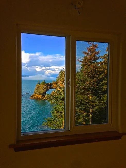 Cook Inlet ve Kachemak Körfezi'nin 180 derece manzarasına sahip bir uçurumun üzerinde yer alıyor. Arka planda, Alaska'nın Ateş Çemberi yanardağları, Augustine, Iliamna, Redoubt ve Mnt. Douglas. 2 dönümlük açık hava eğlencesinin mahremiyeti ve Homer'ın gece hayatına, lüks yemeklerine, mağazalarına ve sanat galerilerine sadece 2 dakika uzaklıkta. 6 kişiye kadar olan gruplar için rahat ve çiftlerin kaçamağı için yeterince samimi.