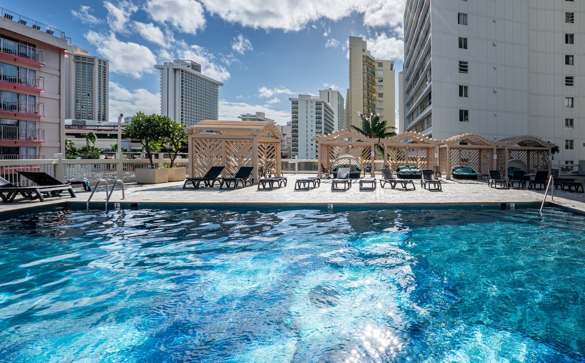 Charming studio located in the Heart of Waikiki. Wake up and watch Waikiki come alive on your private lanai. You are just 2 blocks away from the beach and steps from world class shopping, dining, and entertainment. *NOTICE* The hotel is currently modernizing its two elevators, with the project expected to continue through April 2026. During this time, one elevator will remain available for guest use at all times. We apologize for the inconvenience and thank you for your patience.