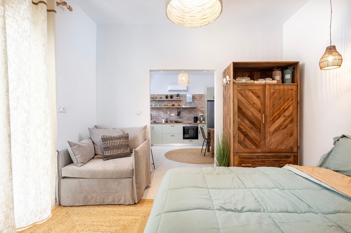Gün batımı manzaralı stüdyo, deniz ve doğaya yakın.