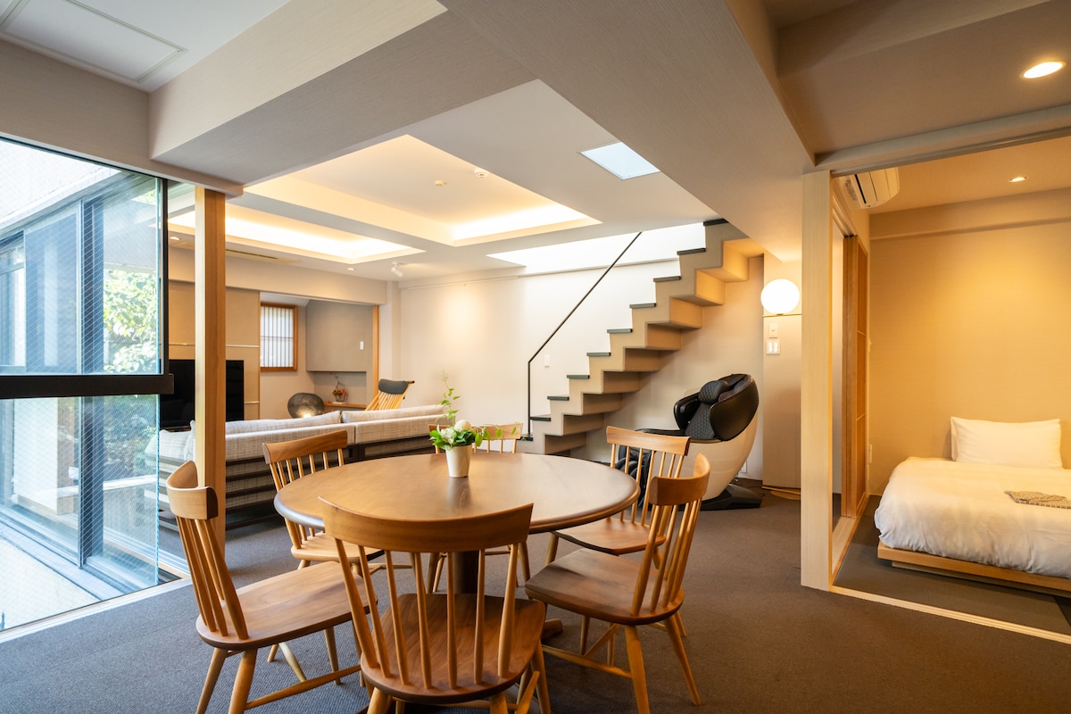 Renewal Open! Same rate for up to 3 guests. Located in central Kyoto—just 5 minutes to the station and grocery store, and 8 to Nishiki Market. Cook in the fully equipped kitchen or explore nearby restaurants and shops. Relax in the cypress wood bath and sleep in a queen bed by Japan Bed Co., supplier to the Imperial Household. The space has 2 sinks, 2 toilets, washer-dryer, and a large closet—perfect for long stays. Please note: Kyoto City accommodation tax is payable in cash at check-in.