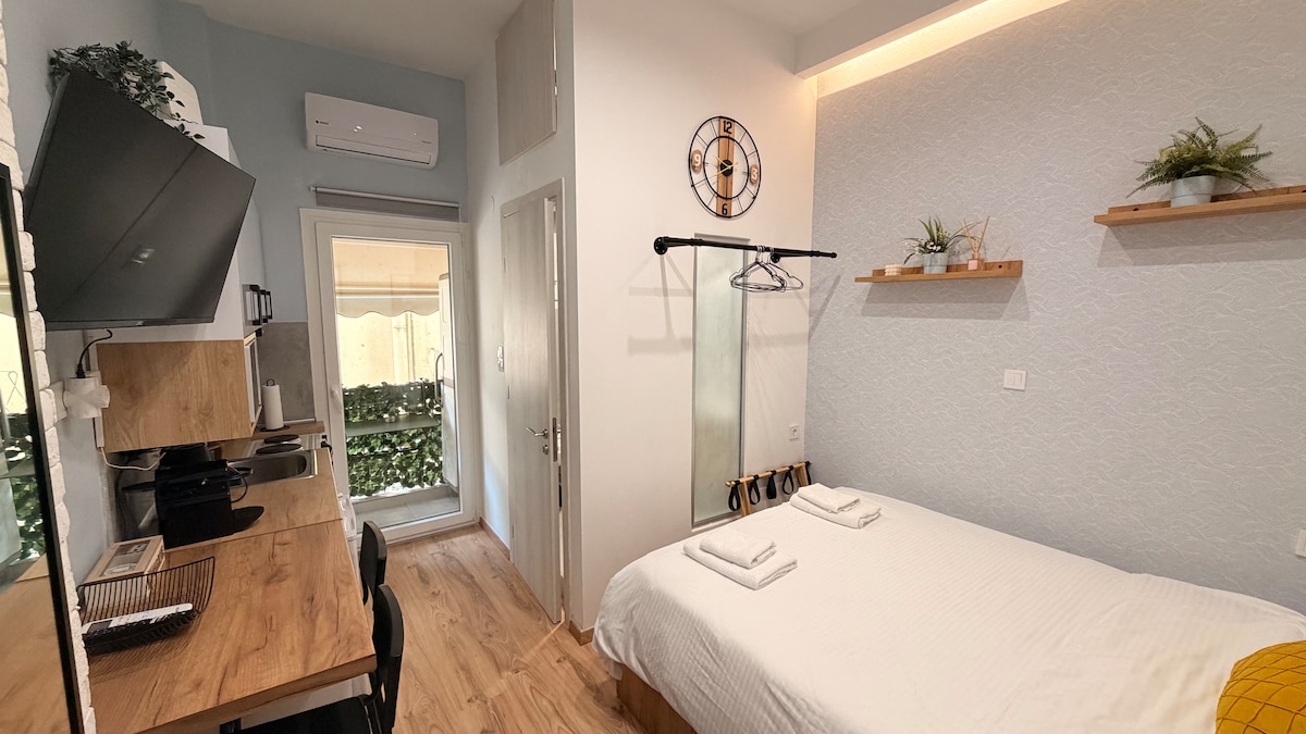 Şehir merkezinin göbeğinde benzersiz büyüleyici stüdyo. Ön kapıdan dışarı çıkın ve kendinizi Aristotelous meydanında, bu canlı şehrin sunduğu her şeyin kolayca ulaşılabilir olduğu bir yerde bulacaksınız! Zarafet ve konfora odaklanarak ustaca tasarlanmış olup, aynı zamanda Mayıs 2023'te tamamlanan yenilemelerle süper şaşırtıcı bir iç avluya sahiptir. 200 Mbps'ye kadar optik fiber internet, lüks yatak, akıllı TV ve hatta Nespresso makinesi sunulan olanaklardan sadece birkaçı! Hoş geldiniz!