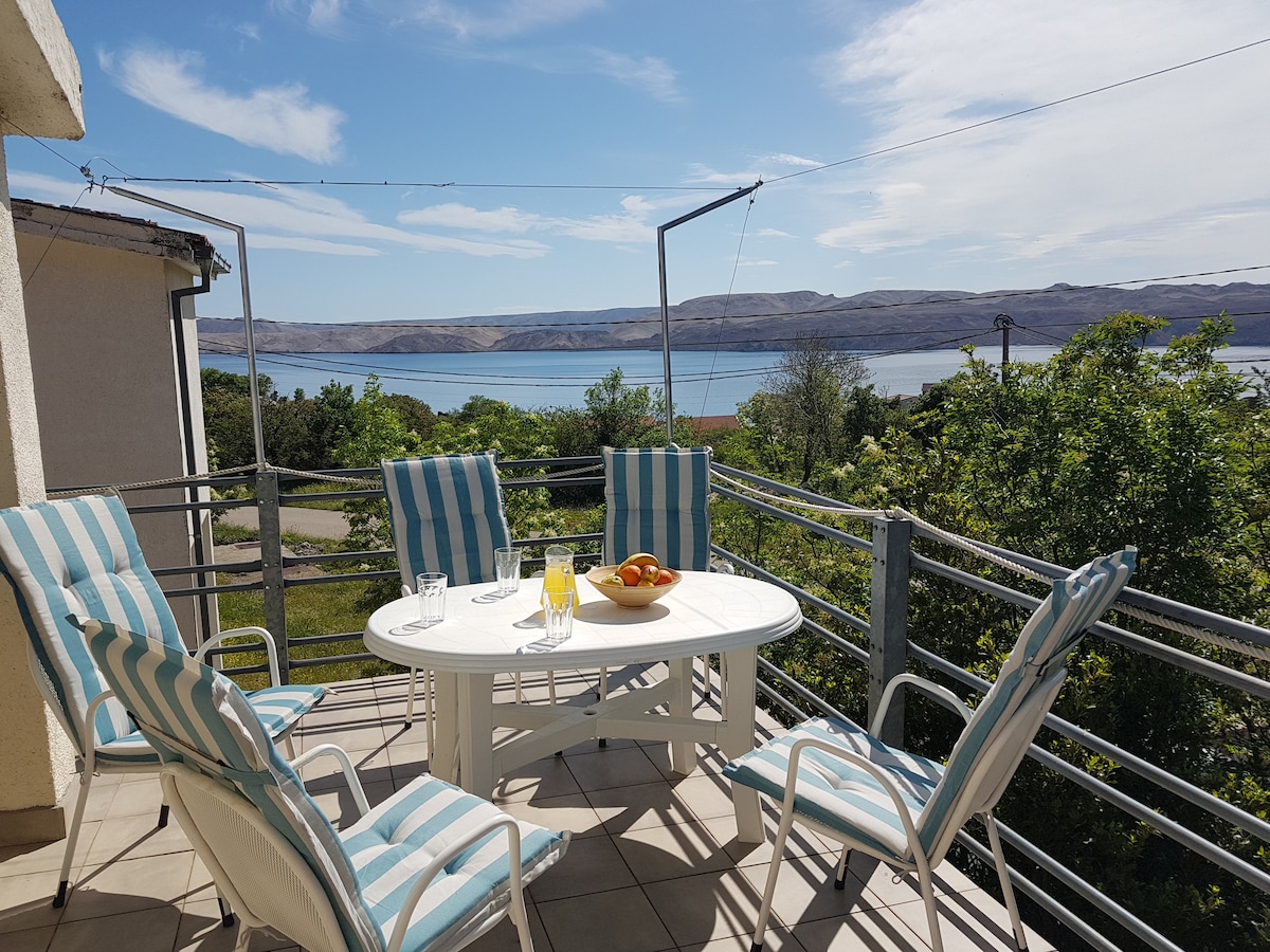 Bu daire merkezi Adriyatik kıyısındadır. Arkanızdaki Velebit dağları ve hemen önünüzdeki deniz ile manzara eşsiz ve serin. Aileler ve kalabalıktan uzaklaşmak isteyenler için mükemmeldir. Ayrıca tüm evcil hayvanlarınızla tanışmaktan da memnuniyet duyarız.
