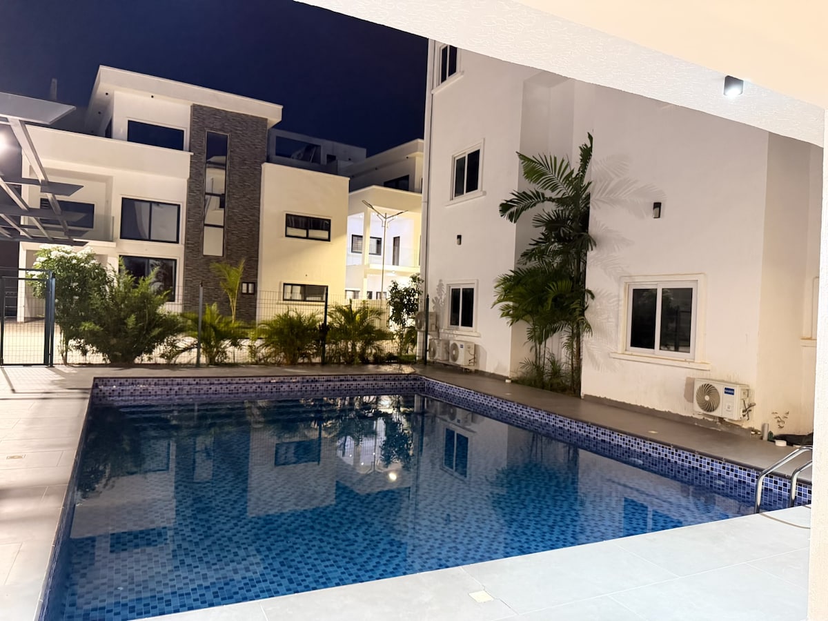 Hızlı kablosuz internet bağlantısı Starlink, akıllı TV'ler, çatı, özel havuz, zarif iç mekanlar ve tam donanımlı bir mutfak ile şık bir dinlenmenin tadını çıkarın. Aileler, çiftler, uzaktan çalışanlar ve iş için seyahat edenler için mükemmeldir. Bojo ve Kokrobite Plajı'na sadece birkaç dakika mesafededir. Plajlara, restoranlara, parklara, müzelere, pazarlara ve dinlenme alanlarına yakın. Havalı balkonlarda dinlenin, bahçedeki barbeküyü ateşleyin veya çatı terasından gün batımını izleyin. Accra'da konforun sahil cazibesiyle buluştuğu Sugarville'deki konaklamanız için rezervasyon yapın!