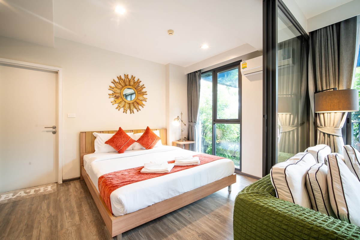 Patong'a arabayla 15 dakika mesafede rahat minimalist oda.