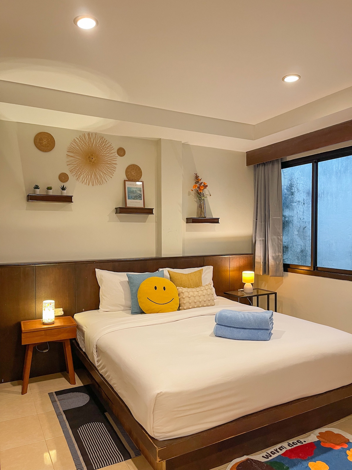 房子位于普吉岛的巴东海滩附近的山林之中,和繁华热闹的海滩商业街相比,这处山居静谧、自然,有一种隐士的气息,山林中有各种树木和花草,有小溪和鱼塘,非常适合放松心灵。在雨季,森林里会有山泉和瀑布。 但它的位置又非常方便,步行可以到达沙滩、餐厅、便利店、酒吧。 步行抵达海滩、便利店、餐厅只需要15分钟。 这是一栋独立的森林度假别墅,它有两层,每层都有一个超大的卧室,在一楼的卧室,有可以欣赏森林景色的大玻璃窗。 一楼有厨房和餐桌休息区域,二楼也有沙发休息区。 我们还有超级美的大阳台,可以欣赏静谧的森林景色。 作为民宿,对于少于一周的短期的住宿我们没有提供每日清洁服务。 提供一次纸巾、卫生纸、咖啡包等消耗品,之后需要自己购买。 提供收费接机服务和其他用车服务。