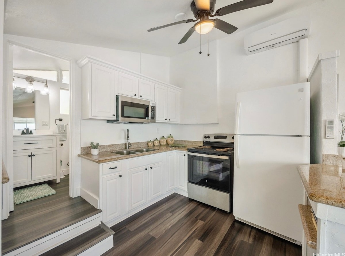 Ruhsatlı, yasal (NUC kısa süreli kiralama #1990/NUC-1819, vergi haritası kodu: 43073024) *Kısa süreli kiralamayı yasaklayan Honolulu yönetmeliklerinden etkilenmez **Yakın zamanda yenilenmiş banyo ve küçük mutfak (Haziran 2023 sonunda)** Cazip Kailua'da huzurlu bir kaçamak! Kailua Plajı'na 8-10 dakikalık kolay bir yürüyüş mesafesindedir. Airbnb "Misafir Favori" awardee! Kardeş birim: Kailua Pineapple Studio. Plaja yürüyün! İZİN VERİLİR. Kupono Services tarafından yönetilen mülk.