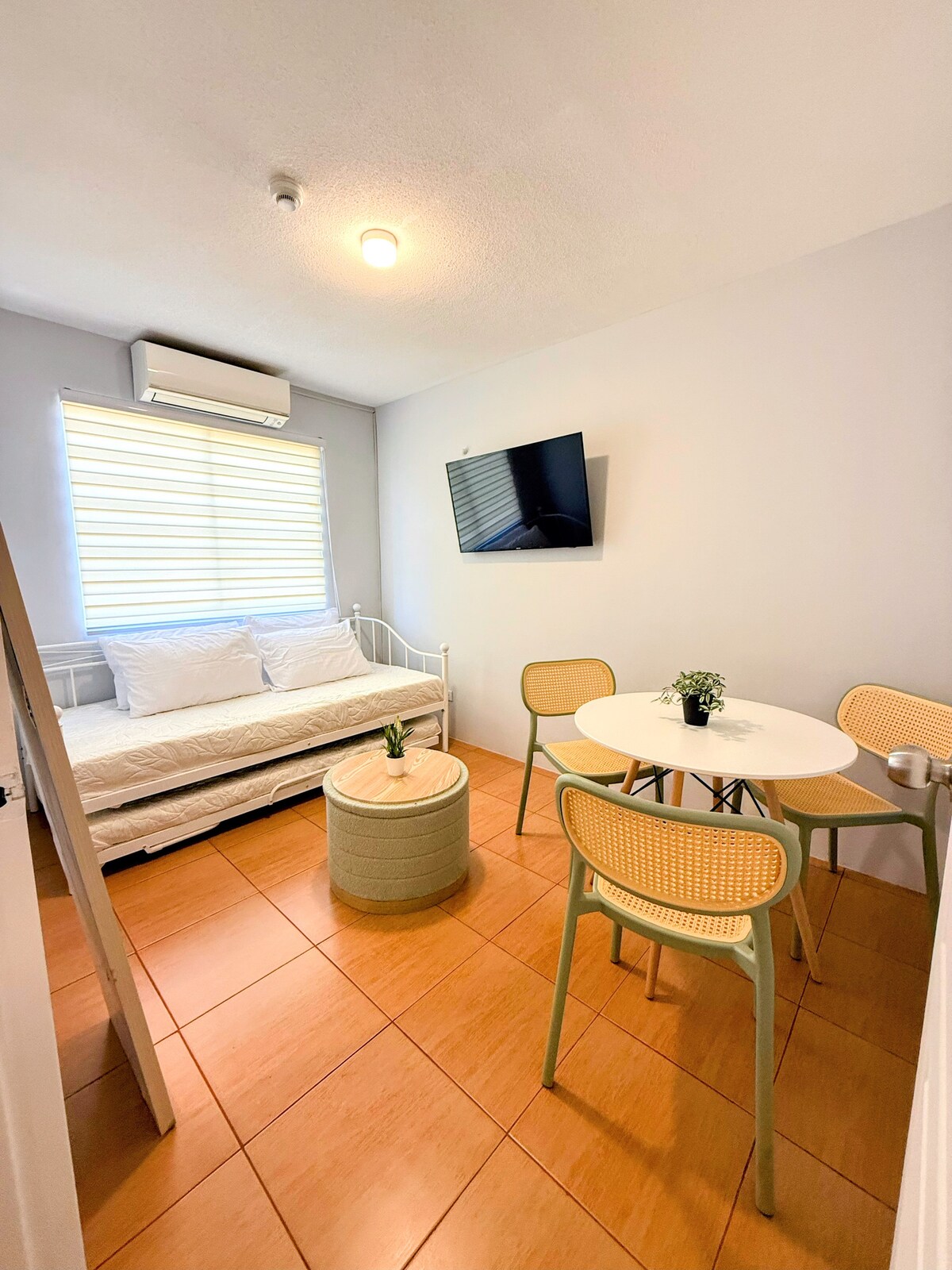 Uptown Cebu'nun Baseline Prestige bölgesinde, şehirde kolay günler ve ada kaçamakları için tasarlanmış, aydınlık, Akdeniz esintili bir stüdyo. Yumuşak kıyı tonlarıyla uyanın, hızlı fiber üzerinde çalışın, ardından sadece birkaç dakika uzaklıktaki kafelere, alışveriş merkezlerine ve hastanelere yürüyün. Pratik dokunuşlarla otel kalitesinde konfor: filtrelenmiş içme suyu, sıcak duş ve tam donanımlı küçük mutfak.