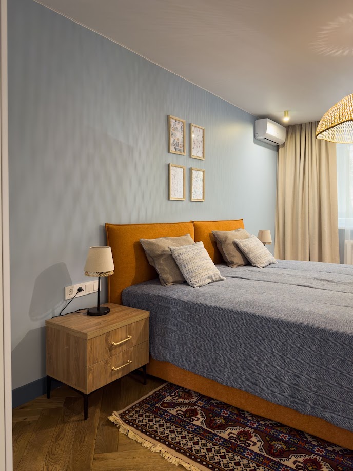 Комфортная и светлая квартира расположена в тихом районе, всего в нескольких минутах от живописной речки и большого парка — отличное место для прогулок и отдыха на свежем воздухе, при этом центр города находится в шаговой доступности. Квартира полностью оборудована: мебель, бытовая техника, интернет. Есть общественные парковочные места вдоль улицы. Тишина, свежий воздух и близость к природным зонам — идеальный выбор для комфортного проживания!