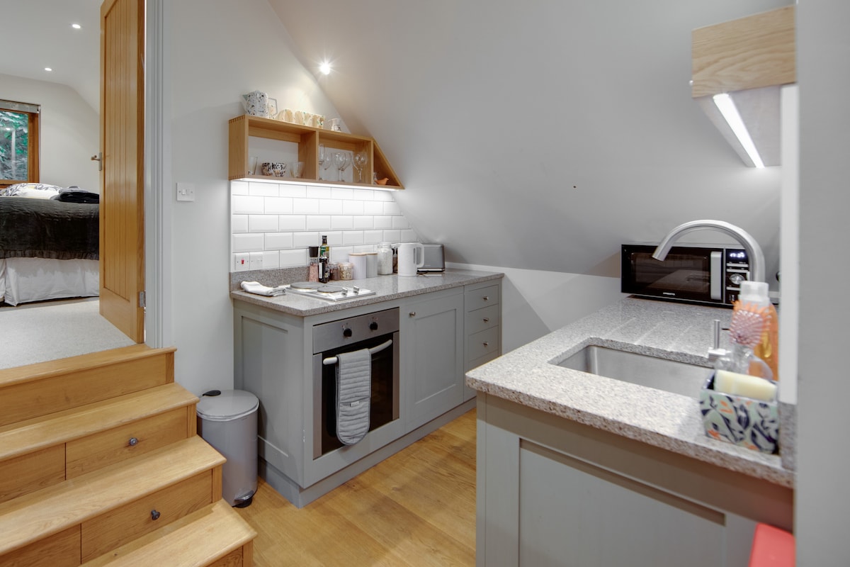 Stüdyo, büyük deponun üzerinde bağımsız, müstakil bir çatı katıdır. İstediğiniz gibi girip çıkmak için kendi ön kapınız var. Stüdyo, porsuklar, geyikler, tilkiler ve kuşlar da dahil olmak üzere çok çeşitli vahşi yaşam için bir sığınak olan Olağanüstü Doğal Güzellik Alanı olan antik ormanlık alanda yer almaktadır...hatta yaban domuzu bile! Stüdyo, yürüyüşler, bisikletler, harika pub'lar, kafeler ve elbette güzel plajlarla Rye'ı ve çevresini keşfetmek için ideal bir cıvata deliğidir.