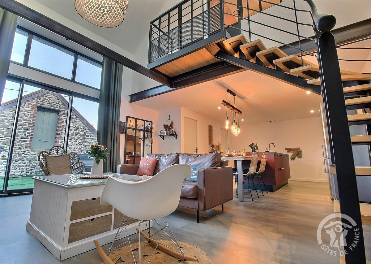 Sanatçı atölyesi ruhuyla tasarlanan bu dubleks, plaja hızlı erişim imkanıyla deniz ve doğaya pastoral bir bakış sunuyor. İki lüks süitin keyfini çıkaran huzurlu ve zarif konaklama, size zamansız bir an sunacaktır. Deniz manzarası, güneşin ideal bir şekilde vurduğu güneye bakan bir konumla, gün içinde gelgitlere göre değişen bir panorama sunuyor. Ünlü Trestrignel bölgesinde ideal bir konuma sahip olan bu konut, Perros-Guirec'teki konaklamanız için ideal bir konuttur.
