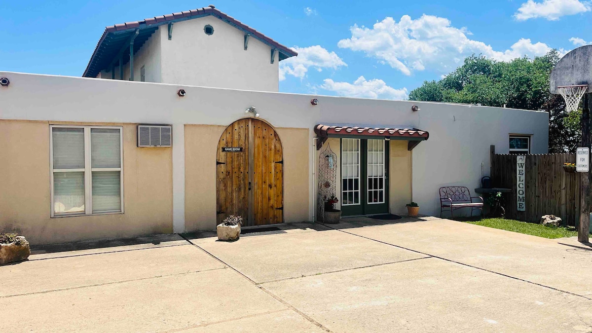Hilltop view, studio ,pool, game room , lots of amenities (see detailed description),3 Miles from the Guadalupe River., and bike trail. Backyard with gas grill, barbecue pits, and fire pit. Picnic table. Washer pit. Pool table, board games, dish and 2 flat screen,Smart tv’s .Axis Deer,beautiful sunsets!!!