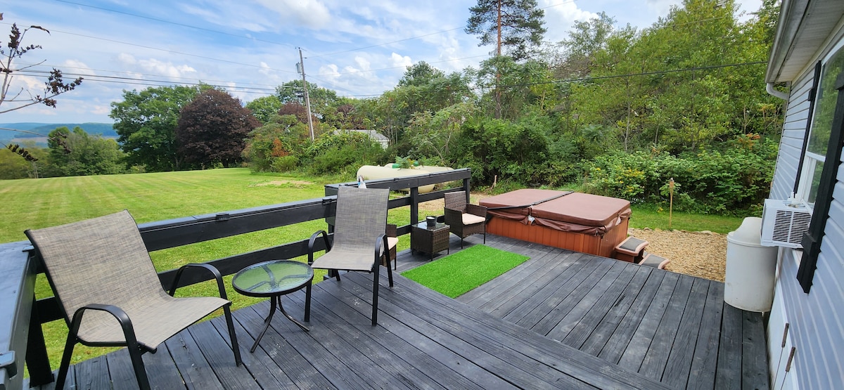 PA Wilds'ın göbeğinde, dinlendirici ve güzel bir inziva sizi bekliyor. Size beklediğiniz tatil deneyimini sunmak için doğa ve konforun buluştuğu Alpine Abode'a hoş geldiniz. Kilometrelerce uzanan güzel bir manzara sunan panoramik pencereler, açık kat planı, rahat bir çift kişilik yatak, derin küvet ve jakuzili özel teras; bu unutamayacağınız bir konaklama olacak! - Jakuzi - Yakacak odun sağlanır. - Çamaşırhane - Güzel manzaralar! - Geniş küvet. - Yakınlarda harika yürüyüş!