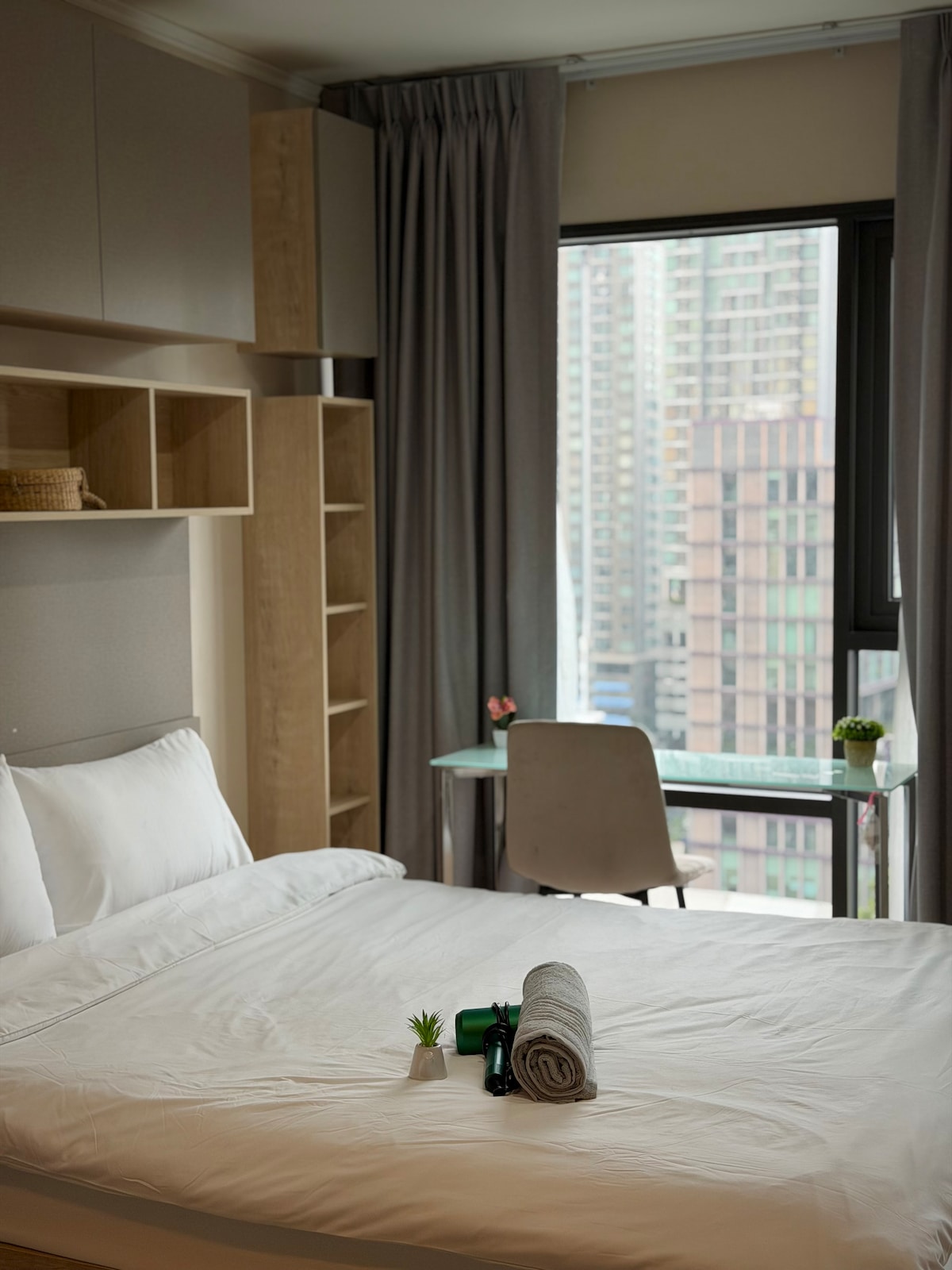 30m²/ 320ft ² Balkonlu, lüks alışveriş merkezine ve yüksek ışıklara yakın yemyeşil stüdyo! Havaalanından ✈️ ÜCRETSİZ KARŞILAMA BTS'ye ✔ 5 dakika, düzenli servis (2 dakika) ✔ Peluş Yatak ve Çeşitli Yastıklar ve Havlular ✔ İyi Stoklanmış Mutfak Yatakta ✔ 43 inç akıllı TV ✔ Yüksek hızlı kablosuz internet bağlantısı ✔ Clean+ şehir manzaralı ve saunalı ✔ sonsuzluk havuzu ✔Donanımlı gökyüzü spor salonu Yakındakiler: 🏪7eleven (270 m) 🍹 Thichuca ve Octave Rooftops (700 m) 💼 WeWork(700 m) 🏢 Emporium & Malls (1,5 km) - 1 stop BTS Öğesini tıklatarak bu kaydı favori listenize ekleyin ❤️