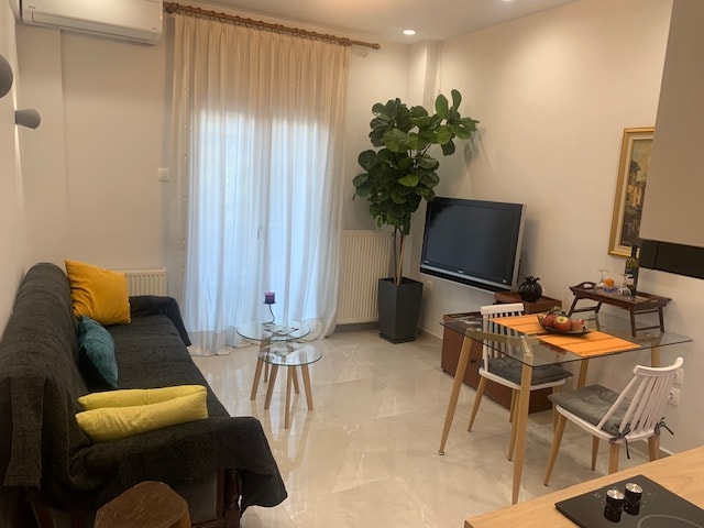 Studio Harmony. Şehir merkezinin yanında, Selanik'in Sidir/Miko İstasyonu ve Metro'nun birkaç metre arkasında, 40 metrekarelik küçük bir daire. 2 kişilik konforlu bir konaklama için uygundur.(Üçüncü bir kişi olasılığı)Tamamen yenilendi. Klima, ısıtma için doğal gaz, zırhlı kapı, 200 mbps internet hızı, tam donanımlı mutfak (seramik ocak ve ankastre fırın,ekmek kızartma makinesi, su ısıtıcısı, Yunan cezve,frappe makinesi), akıllı TV, daire dışında kamera bulunmaktadır.