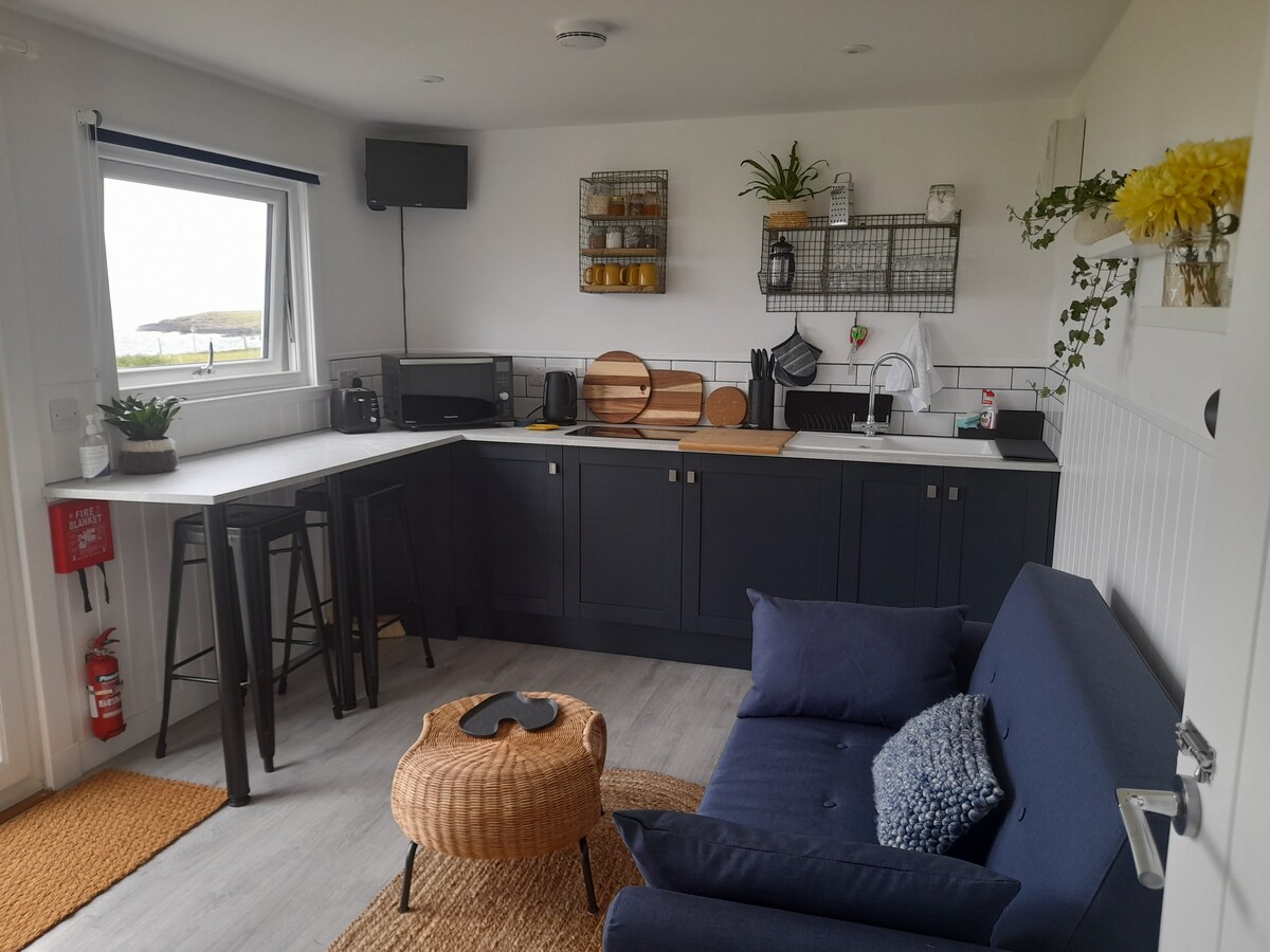 Deniz manzaralı bir çiftlikte An T-Iasgair pod Glamping