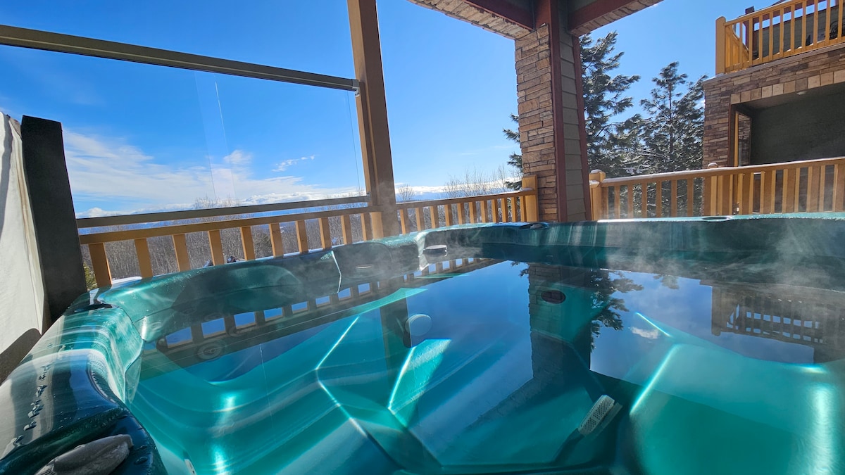 6 yatak odalı kütük ev. Özel jakuzi. Golfçülerin cenneti!