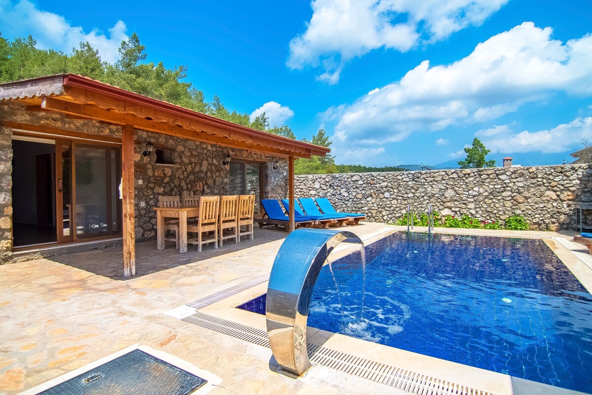 Villa Stone-Kayaköy'de Özel Havuzlu Taş Villa