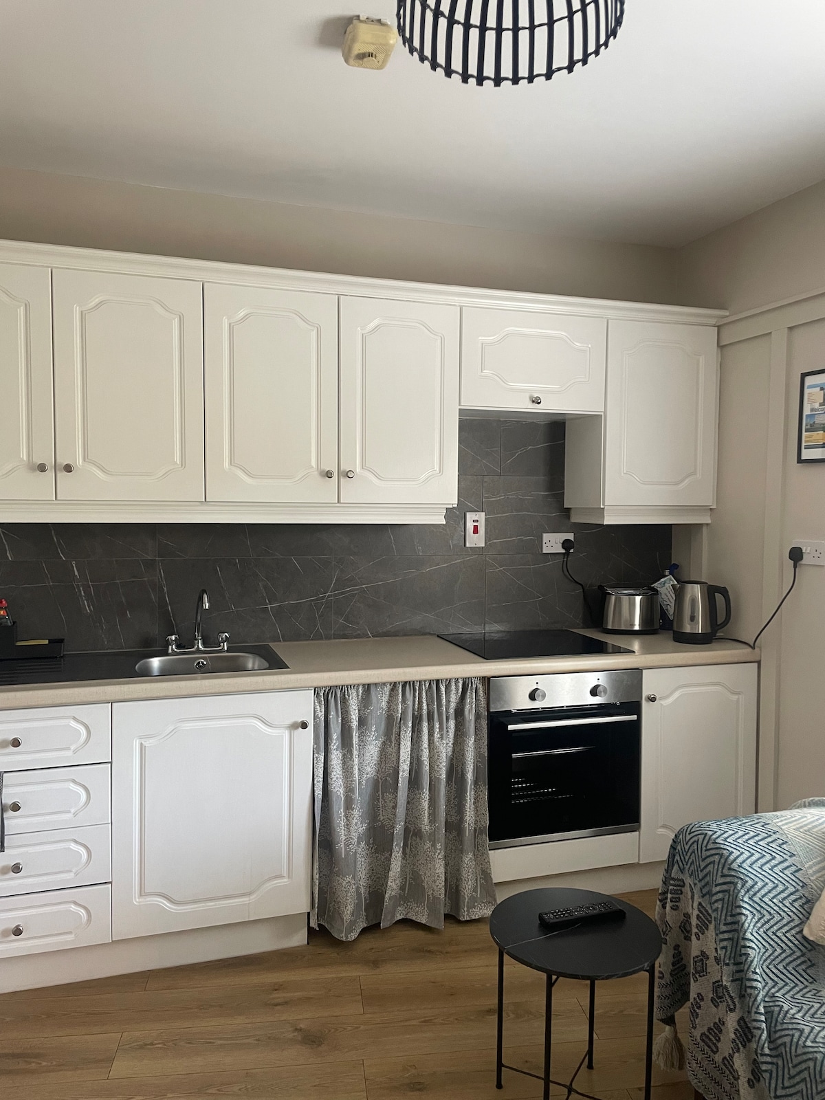Unutulmaz bir dinlenme için konforun nefes kesici okyanus manzaralarıyla buluştuğu Draíocht na Mara'daki lüks, kendi kendine yemek yiyebileceğiniz daireme hoş geldiniz. Daireye 'An Tearmann' diyorum, bu da sığınak anlamına geliyor. Her türlü ihtiyacınızı karşılamak için tasarlanmış geniş bir sığınağa adım atın. Keşifle geçen bir günün ardından, özel sığınağınızın huzuruyla sarılmış, kral boyutundaki yatağın lüks kollarına kendinizi bırakın. Havlu ve canlandırıcı bir duş ile tamamlanan modern ebeveyn banyosunda tazelenin.