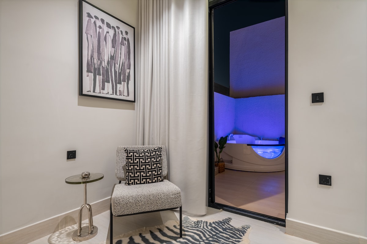 Dairenin Özellikleri: - Özel otopark🚗: Aracınız için özel otopark ile içiniz rahat etsin. - Özel sinema odası🎬: Ev sineması hoparlörleri ile özel bir sinema odasında en sevdiğiniz filmleri izlemenin keyfini çıkarın. - Sıcak ve soğuk jakuzi🛁: Dairenin jakuzisinde benzersiz bir rahatlama deneyiminin tadını çıkarın. - Entegre mutfak🍽️: İtalyan cihazları içerir. - Açık hava oturumu🌌: Açık havanın tadını çıkarın. Önemli kent simgelerine olan mesafeler: ✅ Bulvar: 15 dakika ✅ Kral Faysal İhtisas Hastanesi: 10 dakika ✅ Kral Halid Uluslararası Havalimanı: 30 dakika ✅ Milli Park: 15 dakika