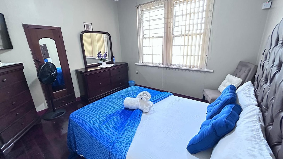 Norman Manley havaalanına 15 dakika mesafede, birçok turistik yere yürüme mesafesinde, Kington şehir merkezinde bulunuyoruz. Evinizden uzaktayken yenilenmiş şık bir evin keyfini çıkarın. Misafirin daireye özel ve ayrıcalıklı erişimi vardır. Havuza ve açık hava dinlenme alanına erişimi olan ücretsiz otopark, KABLOSUZ İNTERNET BAĞLANTISI. Ünitede king boy yatak, cam duş, modern mutfak ve açık konseptli oturma ve yemek odası bulunmaktadır. Tüm pencereler Kingston Limanı'nın engelsiz bir manzarasına sahiptir.
