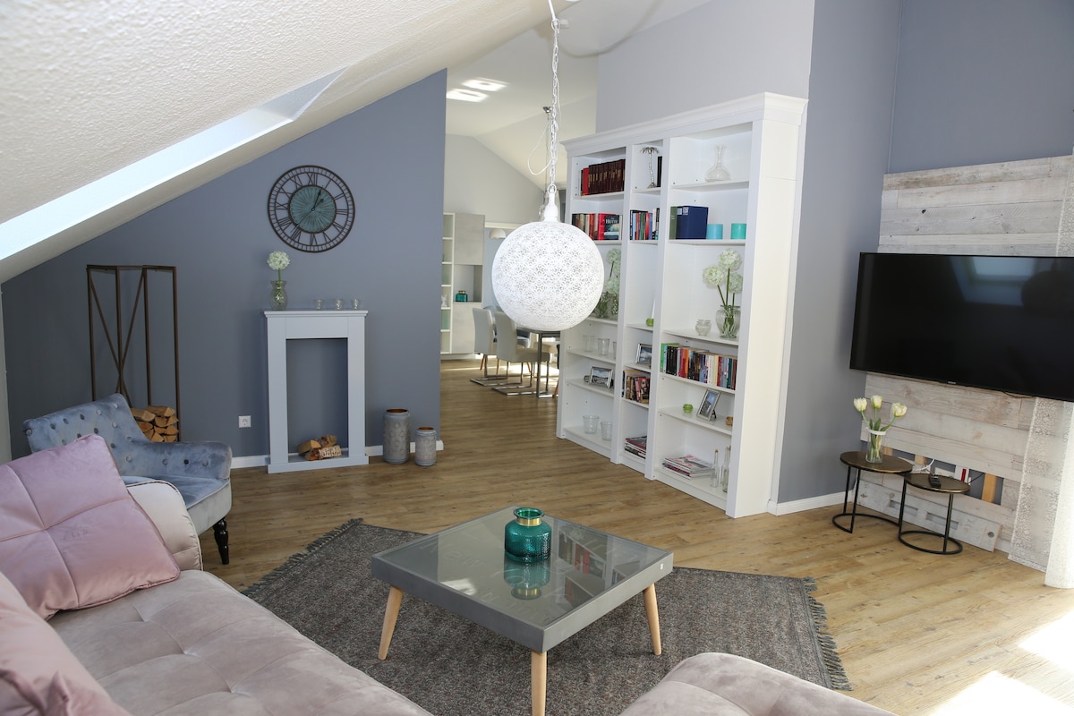 S - Bahn'a sadece 3 dakika mesafedeki şık bodrum çatı katımızın keyfini çıkarın. (Stuttgart'a 20 dakika) Çatı katı, ferah atmosferi ve bol doğal ışık alan büyük pencereleriyle etkileyicidir. Rahat kanepede dinlenin, bilardo oynayın veya terasta temiz havanın tadını çıkarın. Dinlenmek, kitap okumak veya sadece dinlenmek için mükemmel bir yer. Sizi yakında burada ağırlamayı sabırsızlıkla bekliyoruz!
