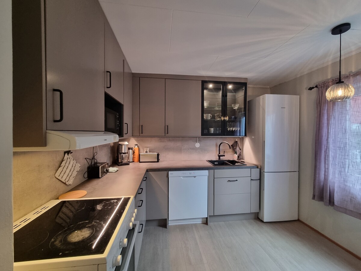 1 yataklı (120 cm) uyku girintisi ve depolama/uyku girintisinde 1 yataklı (90 cm) daire, tam donanımlı mutfak, banyo ve TV'li (Allente ve Netflix) oturma odası. Özel giriş. Havaalanına 5 km, Kirkenes'e 18 km, Finlandiya sınırına yaklaşık 4 mil. Neiden Bru'dan Kirkenes'e doğru 25,7 km. Kırsal, dağlara, göllere, avlanma ve yürüyüş alanlarına yakınlık. Evden doğru kayak koşusu. Yeni yenilenmiş, banyo biraz yıpranmış. Nevresim takımları ve havlular.