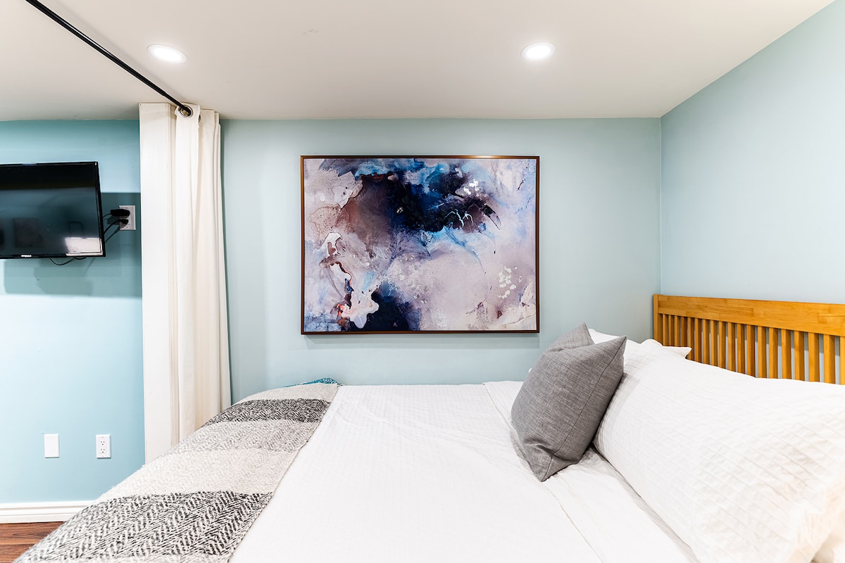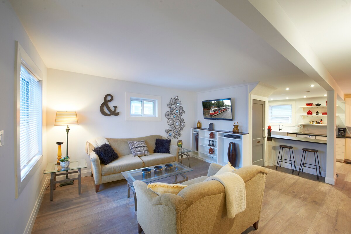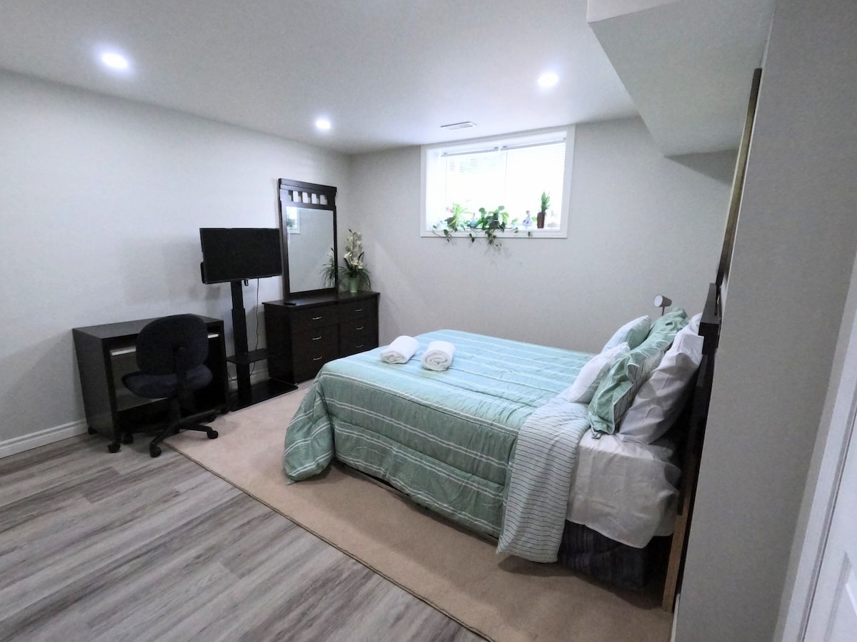 Bu muhteşem, yeni yenilenmiş bodrum dairesinin her yerinde parlak pencereler ve ana yatak odasında inanılmaz derecede konforlu bir çift kişilik yatak bulunmaktadır. Ayrıca ekstra misafir için bir şilte de vardır. Kitchener-Waterloo'nun merkezinde, şehir merkezine sadece birkaç adım uzaklıkta konaklamanızın tadını çıkarmanız için ihtiyacınız olan tüm olanaklara sahiptir. Mutfak, gurme bir akşam yemeği hazırlamak için iyi hazırlanmıştır ve hızlı kablosuz internet bağlantısı, masada çalışmak veya film izlemek için idealdir. Keyfini çıkarabileceğiniz rahatlatıcı bir açık alanımız da var.