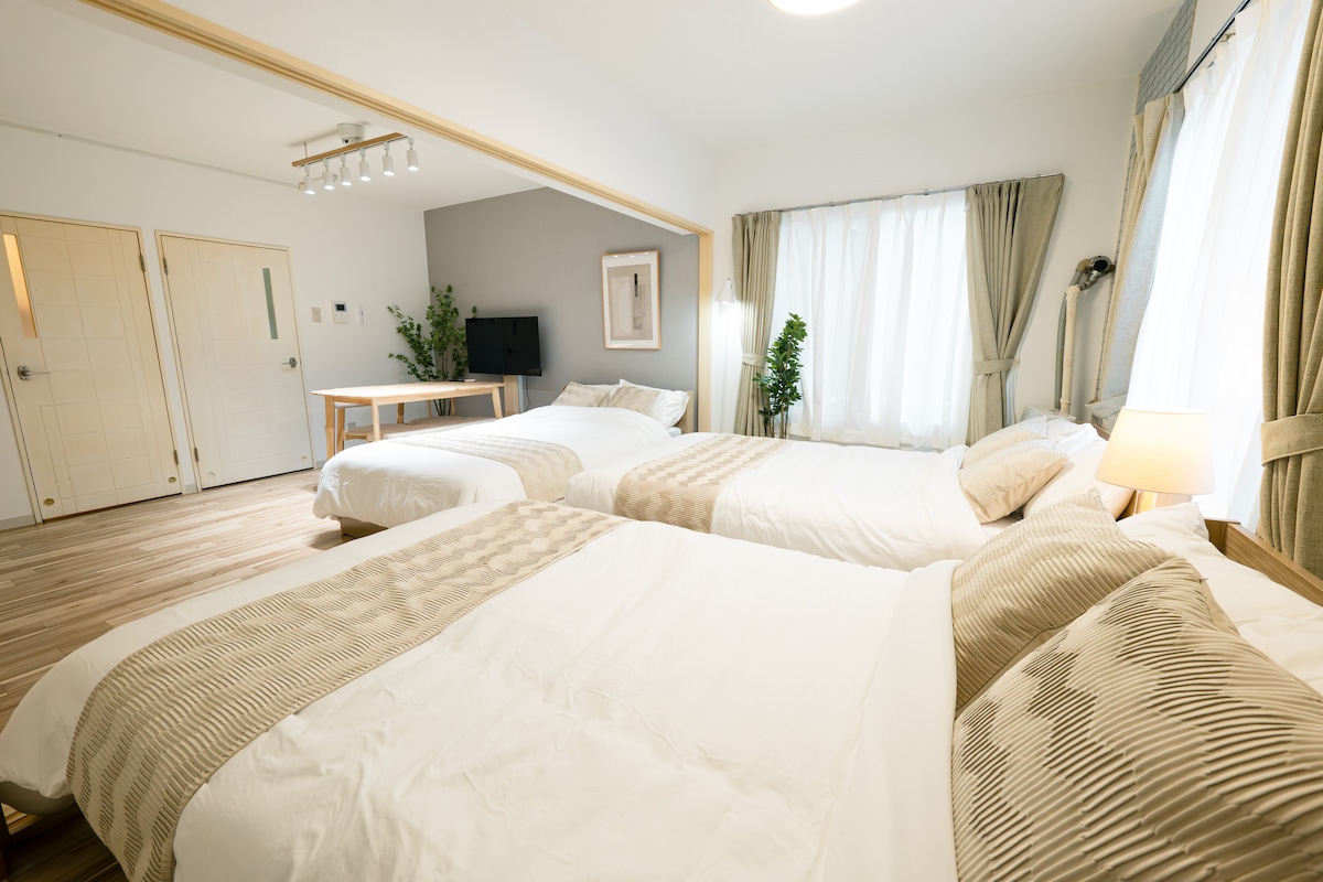En fazla 6 misafir. Yemekli aile/grup odası. ◎ Özellikler ・Ahşap masa + bank ・3 yarı çift kişilik yatak (maks. 6) ・Uzun süreli konaklamalar ve uzaktan çalışma memnuniyetle karşılanır. ・Bebek sandalyesi ◎ Park yeri ・Ücretsiz otopark 1 araba ◎ Erişim ・Nakano-shima İstasyonu (Çıkış 2) 7 dakika yürüme mesafesindedir. ・ Metro: Susukino 4 dakika, Sapporo 7 dakika (aktarmasız). ・Arabayla: Susukino 10 dakika, Sapporo 15 dakika ◎ Alan ・ Mağazalar ve restoranlar yürüme mesafesindedir. ・Sessiz yerleşim alanı