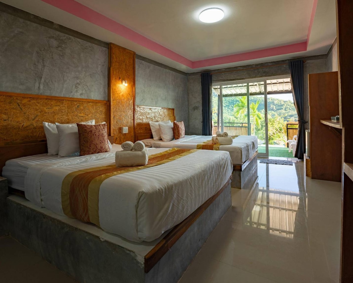 Plaja ve Andaman Denizi'ne bakan deniz manzaralı, tatil romantik bir çift için uygun, tarz olarak güzel tasarlanmış 2 katlı bir bina. (Yokuş yukarı konumdan dolayı yaşlılar veya bağlantılarla ilgili sorunu olan kişiler için uygun değildir.) Bu konaklama sadece 2 kişi ile sınırlıdır. Ek yatak veya bebek karyolası eklenemez. Çocuklar için uygun değildir.