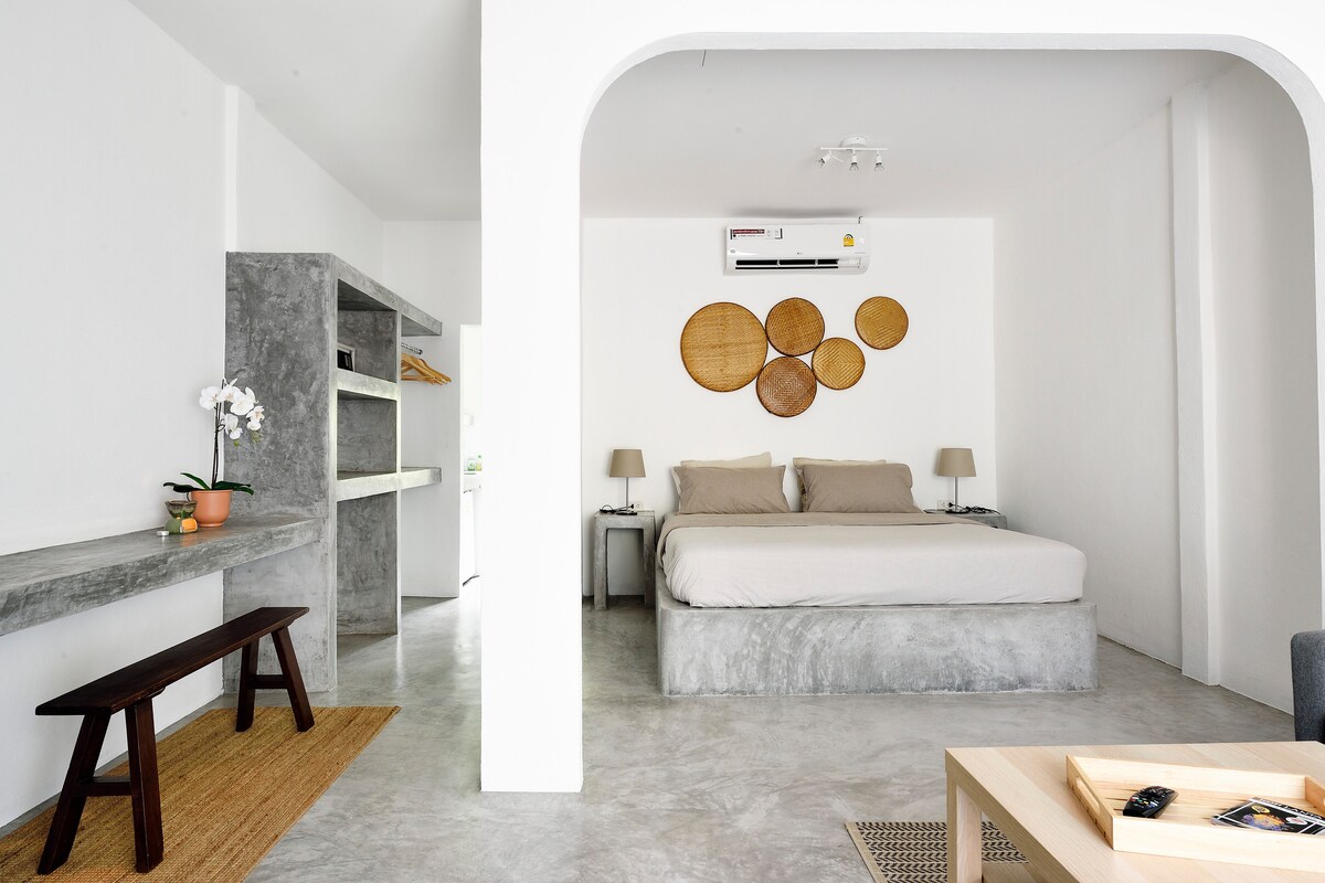 Masa, fiber kablosuz internet bağlantısı 600×600 Mbps, 2 sessiz klima, akıllı TV, özel tik terası ve indüksiyonlu ocaklı küçük mutfak ile uzaktan çalışmaya hazır. Sessiz, modern, minimalist, doğaya yakın. Khlong Chak Plajı'na 10 dakikadan kısa sürede yürüyün; keşfetmek için scooter/taksi önerilir. Bu rezervasyon Cascade Hills Bungalows'daki B (orta) birimi içindir.