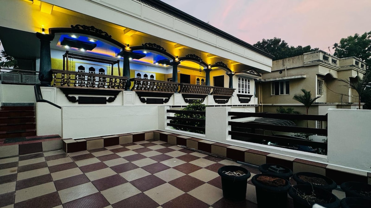 Küçük şirin evimiz Chengamanad, Kochi yollarında gizlenmiş. Emektar bir ordu subayı tarafından işletilen ev, doğanın sessizliğini ve ev diyebilecekleri özel bir alanı sevenler için mükemmeldir. Ağaçlarla çevrili, en sevdiğimiz yer çeşme önderliğindeki verandadır, aynı zamanda burada yaşayan Cockatiel'ler ve balıklar da burada kalır. Yerel halk olarak her türlü isteğinize yardımcı olabiliriz. ~Sürüş Mesafeleri~ Kochi Havaalanı'na 10 dakika MG Road'a 45 dakika, Ernakulam Cherai Beach'e 35 dakika