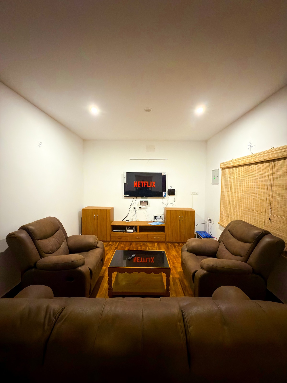Welcome to your hilltop escape — a soulful retreat just 2.7 km from town. Tucked in a secure yet peaceful spot, it offers stunning views on both sides. Cozy interiors, soft lighting, a projector for movie nights, and a scenic deck create the perfect space to relax. Ideal for couples, solo travelers, or small families seeking a stylish and quiet getaway close to the town, but far from the noise.