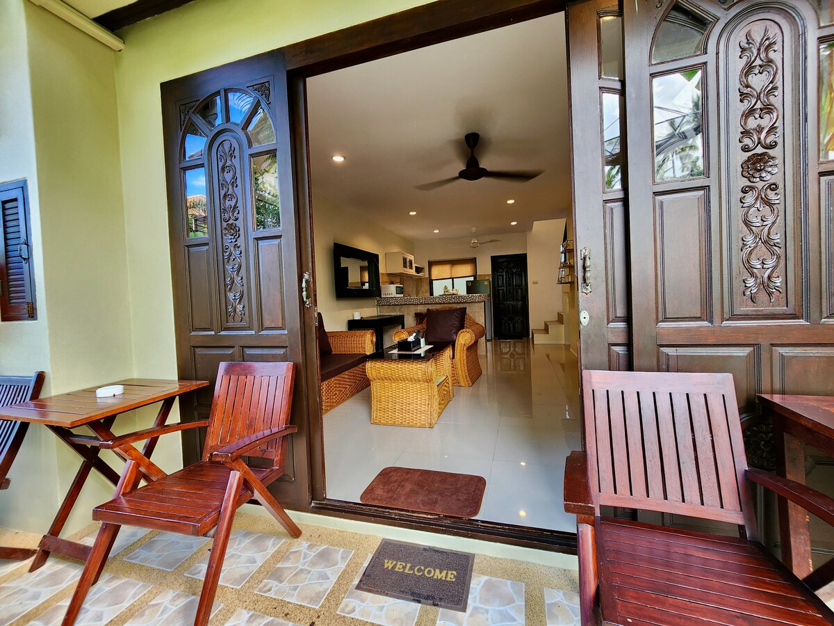 2024 baharında yakın zamanda yenilenen bu iki katlı 80 metrekarelik sıra ev tarzı daire, LED akıllı TV'li bir oturma odası, tam donanımlı mutfak, çalışma masası, misafir tuvaleti, açık hava masası ve oturma yerleri ve özel verandası olan bir zemin seviyesine sahiptir. Üst katta king boy yataklı 1 yatak odası, 2 tek kişilik yataklı 1 yatak odası ve duşlu bir banyo bulunmaktadır. Tüm odalarda klima. 24 saat havuz, şezlong ve tropikal avlu ile güzel bakımlı küçük kompleks. Adanın ana yoluna ve Chaweng Noi plajına 5 dakika yürüme mesafesindedir.