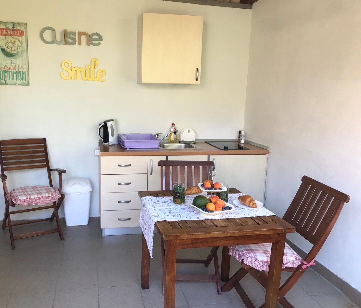 Güzel dairemiz iki kişilik tatil için harika bir yerdir. Aile evimizin doğu tarafında sessiz bir ortamda bulunmaktadır. Bahçenin güzel bir manzarasına sahiptir. Evimiz kasabanın batı kesiminde, ünlü plajlara, Hulla-hulla, Falco plajı, Amfora plajına yakın bir yerde bulunmaktadır. Plajlara 6 dakika yürüyüş mesafesinde, kasaba merkezine 15-20 dakika yavaş yürüyüş mesafesinde.