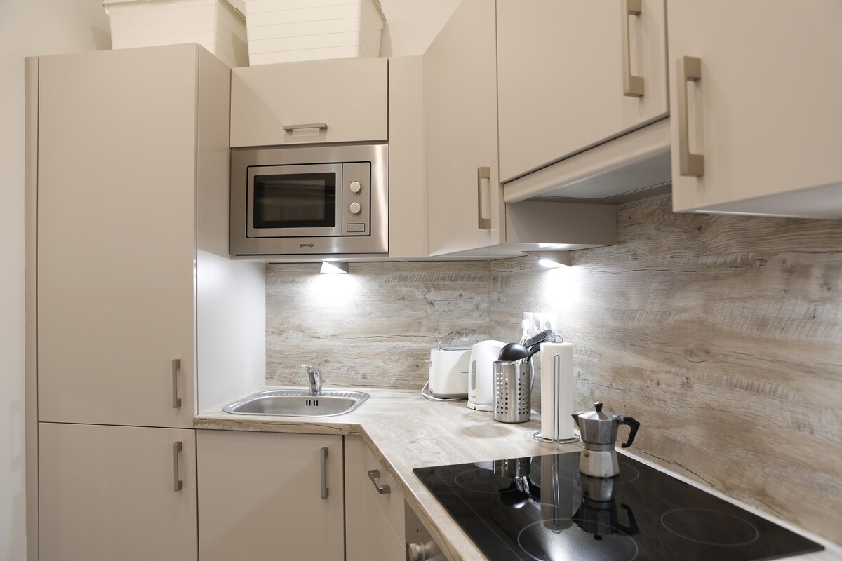 Tamamı mobilyalı kiralık mekânlarda hem mutfak hem de bir ay veya daha uzun bir süre boyunca rahatça yaşamanız için gereken her türlü olanak bulunur. Devren kiralamaya mükemmel bir alternatif.