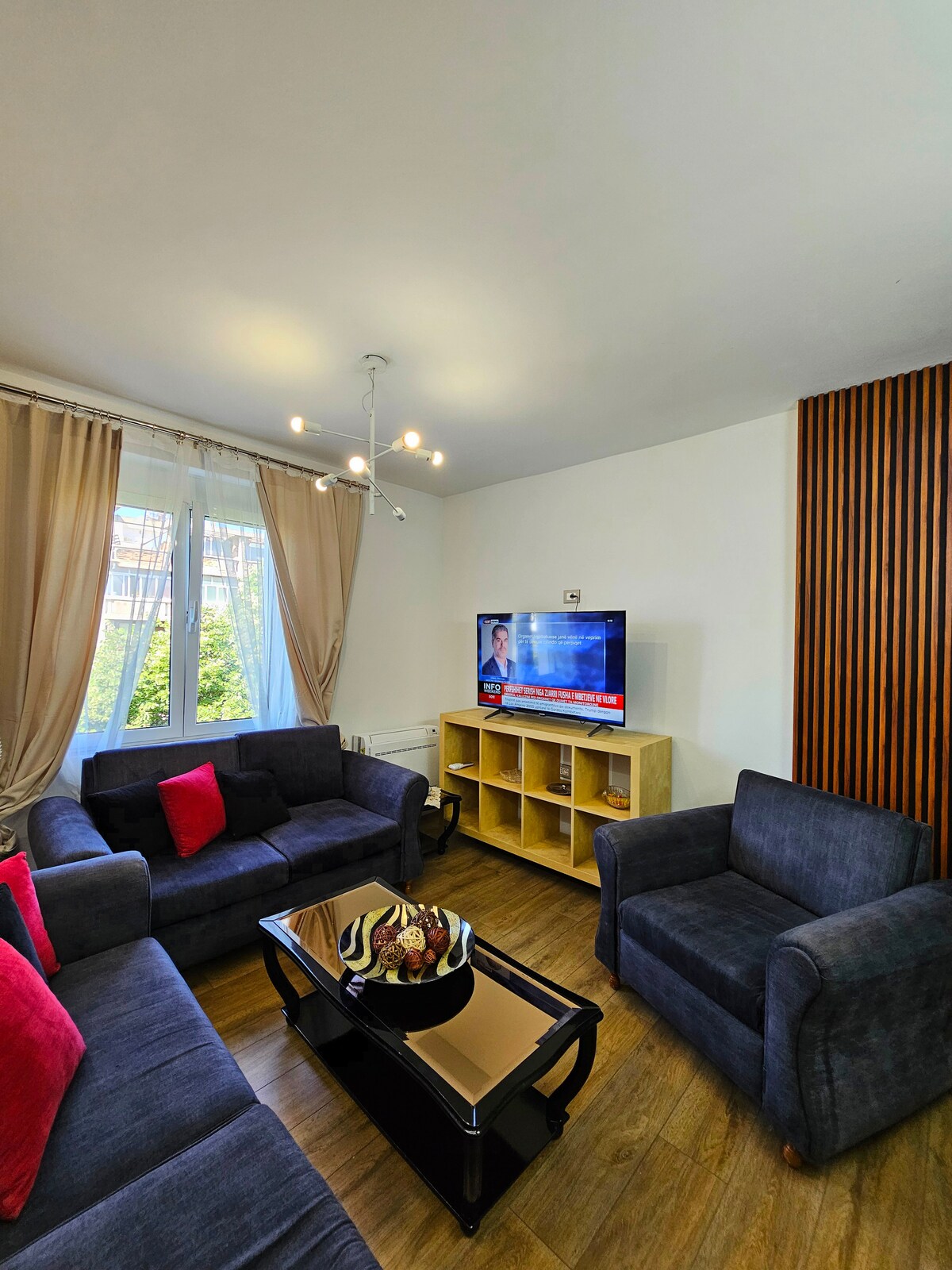 Korça'nın en geleneksel semtinde, Bulevardi Republika'ya sadece 200 m mesafede, yepyeni 60 m²'lik bir dairede konaklayın. Modern bir binanın zemin katında yer alan bu mekânda bir yatak odası, tam donanımlı bir mutfak ve geniş bir banyo bulunmaktadır. Sokakta ücretsiz park edebilir ve Morava Dağı'na, tarihi kiliselere, rahat kafelere ve en iyi yerel restoranlara kolayca erişebilirsiniz.