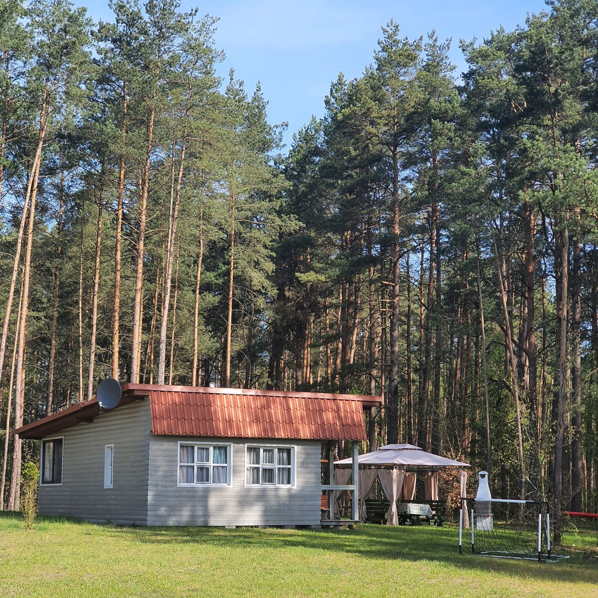 Bir açıklıkta, ormanın kenarında, nehrin kenarında ve temiz bir göle 150 metre mesafede büyüleyici yazlık ahşap kulübeler.