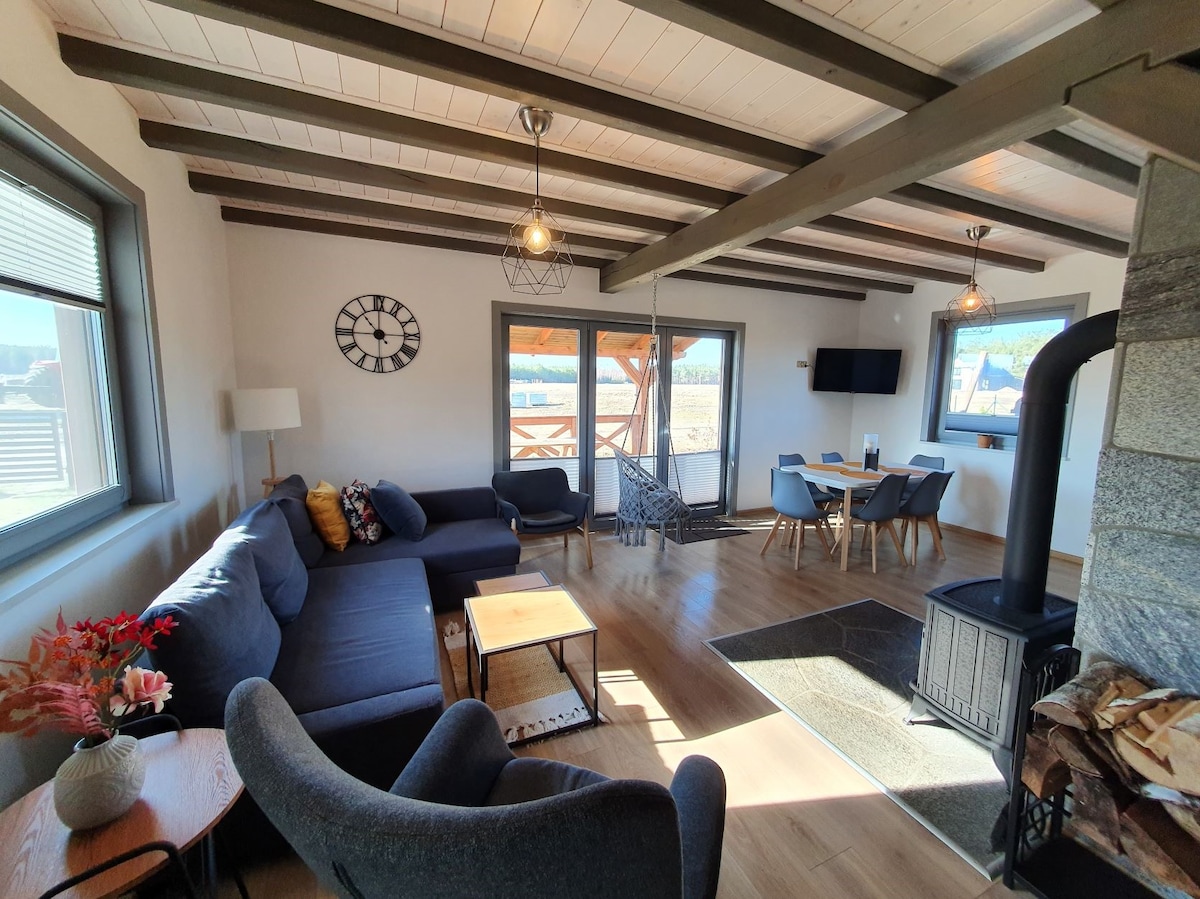 Tüm misafirler bu yerin ferah ve sıra dışı iç mekanlarının keyfini çıkarabilir. Sizi Wdzydzkie Gölü'ndeki Bory Tucholskie'deki Kashubia'nın kalbinde güzel konumlu bir turistik yer olan Wdzydz'de dinlenmeye davet ediyoruz. Size yıl boyunca konforlu bir ahşap yarı müstakil evde konaklama sunuyoruz. Ev tam donanımlıdır, şöminelere ek olarak merkezi ısıtma vardır. Güzel manzaralar, yakındaki orman ve göllerin yakınlığı burada kendinizi çok iyi hissetmenizi sağlayacak.
