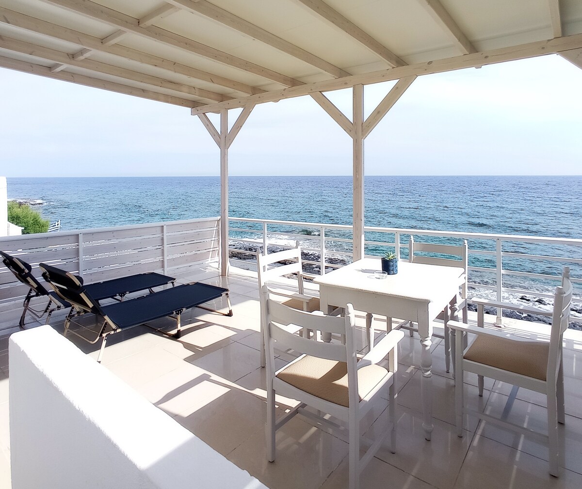 En sevdiğimiz ev kelimenin tam anlamıyla sahilde bulunmaktadır, kendi banyosu ve bağımsız girişi olan 3 odası, teraslı bir dairesi ve geniş bir ortak oturma ve yemek alanı vardır. Deniz esintisini görmeyi, duymayı ve hissetmeyi hayal ediyorsanız aradığınız yer burası. Çiftler için huzurlu bir tatil için idealdir. Güney Girit'in en iyi plajları yanınızda. Önünüzde kayalık bir plaj var ama aynı zamanda yakınınızda kumlu bir plaj da var.