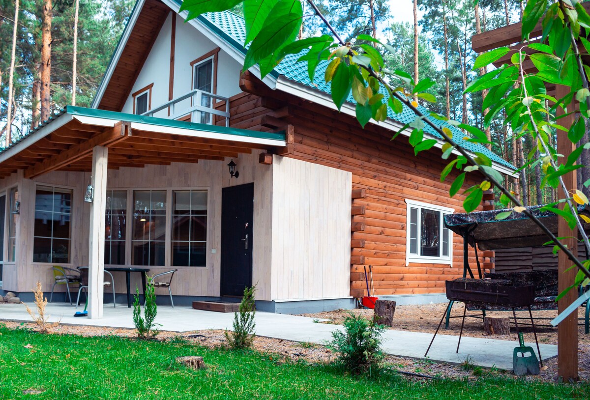 Bu modern kulübe bir çam ormanının ortasında yer alıyor. Evin iki yatak odası, geniş bir stüdyo mutfağı, şömineli bir oturma odası vardır. Evin yakınında oyun alanı ve bisiklet kiralama bulunmaktadır. Desna Nehri üzerindeki plaj evden 10 dakikalık yürüyüş mesafesindedir.