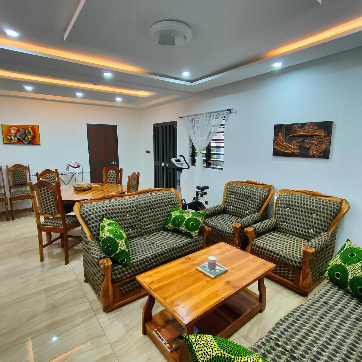 Burası, Volta bölgesindeki Kpando'da küçük bir köy olan Dzoanti'nin kalbinde yer alıyor. Misafir(ler) yerli halk arasında yaşıyor ve onlardan bir şeyler öğrenirken konforlu bir konaklamanın keyfini çıkarıyor. Geniş oturma odası, özel giriş TV, ev sineması, king boy yatak, klima ile tek (1) yatak odalı bir ebeveyn banyosudur.