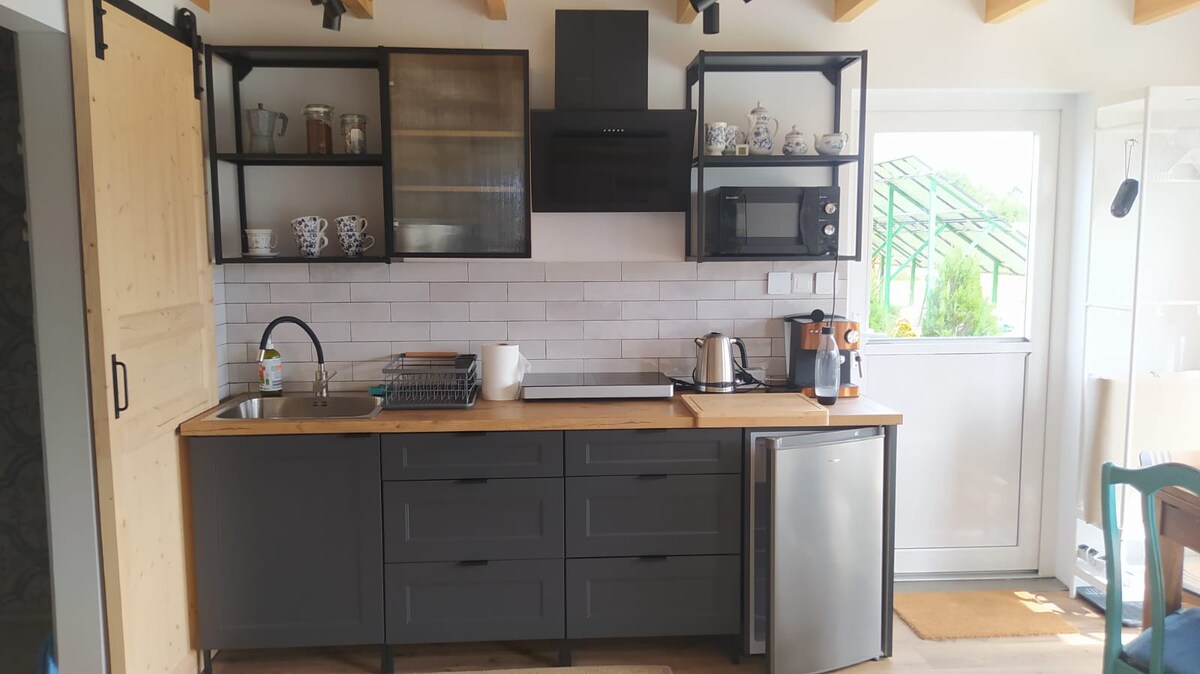 Doğadaki bu romantik yerin güzel çevresinin keyfini çıkarın. MiniSpa Bölgesi - Fin saunasına sınırsız erişim - Odun ateşiyle ısıtılan jakuzide özel oturum (ekstra ücret). - Yiyecek arama fıçısı Cottage Premium 36 m2 - Tam donanımlı mutfak. - Bulaşık makinesi. - Isıtma fonksiyonlu klima. - Yatak odasında çift kişilik yatak - Oturma odasında katlanır köşe ( 140x200) - Modern tasarım - Özel bahçe (bitki örtüsü ile ayrılmış)