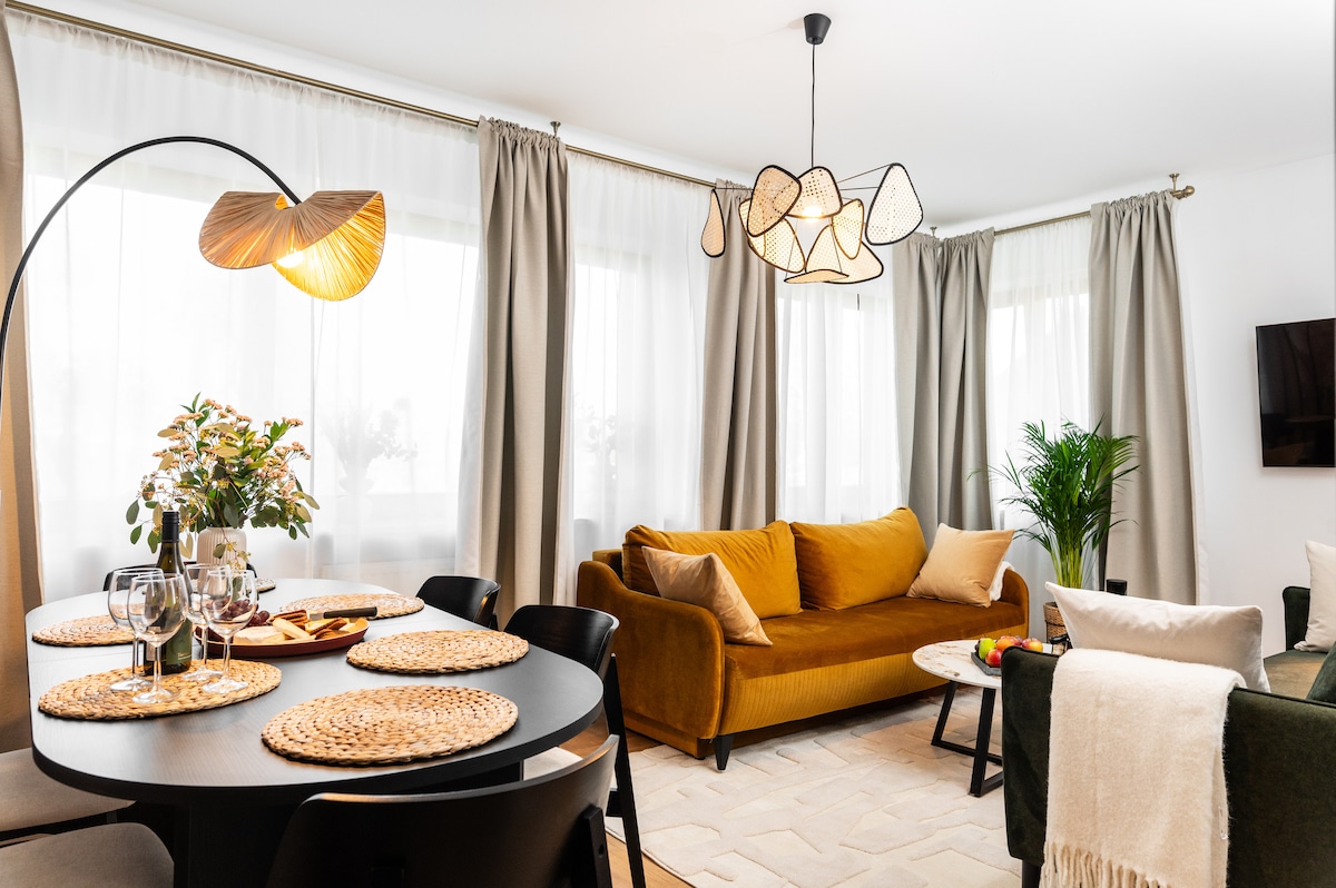 Konforlu bir konaklama ve tam rahatlama sağlamak için tam donanımlı şık daireler. Misafirlerimize en küçük detayına kadar özen gösterilerek hazırlanmış eşsiz daireler sunuyoruz. Her daire, dinlenme sırasında konfor sağlayacak şekilde donatılmıştır - konforlu yataklar, tam donanımlı küçük mutfak, modern RTV ve ev aletleri, havlu ve bir dizi kozmetik malzemeyle özel banyo.